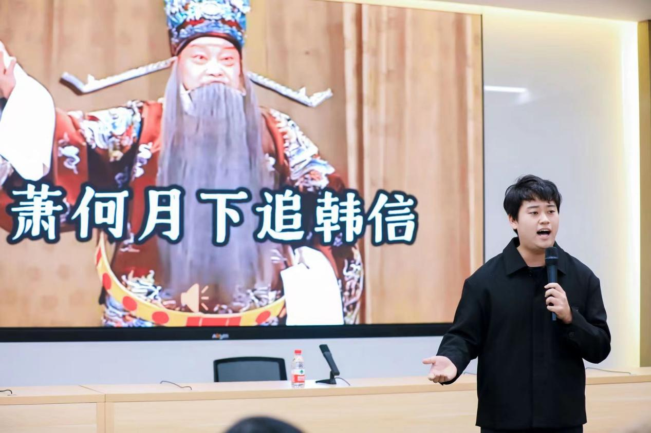 beat3652023级本科生表演了精彩的节目。王英昊同学演唱了京剧选段《萧何月下追韩信》,唱腔高亢嘹亮,赢得了阵阵掌声。