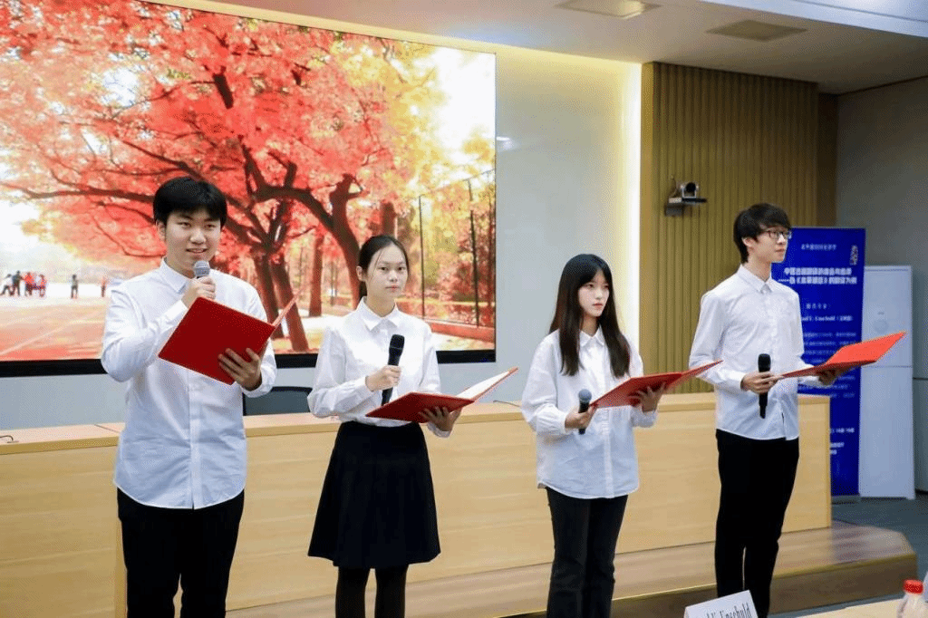 方霖城、夏昀菎、郑瑞丹、李奕萱等四位同学深情朗诵了经典德文诗歌《秋日》和《希望》,动听的嗓音为颁奖仪式画上了圆满的句号。