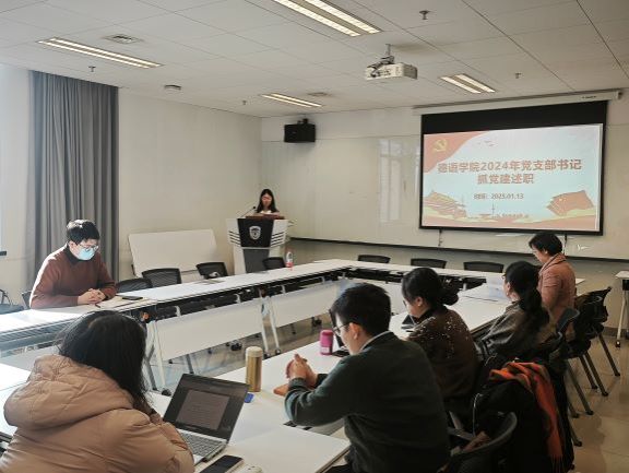 各党支部书记先后作了述职报告,汇报了2024年在理论学习、党支部建设、党员发展、党员教育管理等方面的履职情况,并提出了工作中存在的不足及下一步工作思路。各党支部在2024年坚持以习近平新时代中国特色社会主义思想为指导,认真落实公司党委各项工作要求,扎实开展主题教育,在党总支的领导下,均顺利完成了2024年党员发展计划及党员统计任务,规范党员发展程序,及时维护党员“E先锋”系统,确保党员发展、转正线上线下进行。扎实推进支部规范化建设,提升党建工作质量。本科生党支部创新党建形式与方法,与北外附校初中部党支部开展红色“1+1”共建项目,获校级重点资助项目。研究生第一党支部制定了理论学习计划,通过支部书记领学、观看视频、知识问答等多种方式,提高理论学习的系统性和实效性。研究生第二党支部发挥博士生党员、高年级硕士生党员作用,为低年级员工开展学术经验、就业经验分享活动。教师党支部注重发挥党支部战斗堡垒作用,带领全体教师每月开展1次集体理论学习,与中央广播电视总台欧洲拉美地区语言节目中心德语党支部开展联学联建,前往首都博物馆、孔庙和国子监博物馆、民族文化宫等多个博物馆开展党风廉政、文化自信、民族团结等实践教育学习活动。