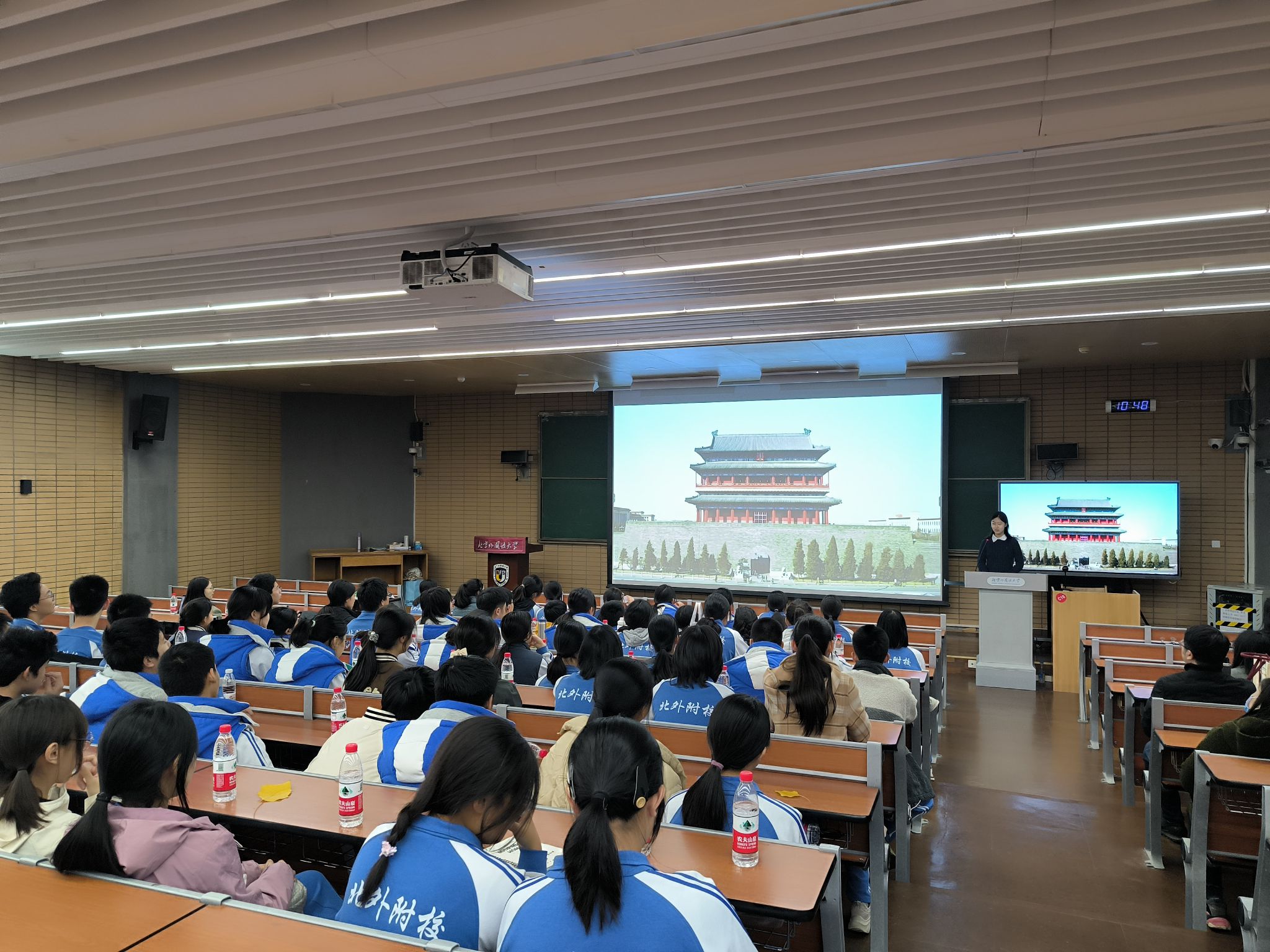 10月22日、24日、25日,beat365本科生党支部与共建党支部开展“我们在一起”2024中德人文交流系列活动。10月22日,北外beat365党总支组织员张春霞、本科生党支部成员黄徐洋、黄婉茹前往北外附校与共建支部教师向德国科隆Kreuzgasse中学师生开展“跨越中轴线”讲座,介绍老员工国家级大创项目《跨越中轴线》成果,对比分析北京中轴线和德国柏林中轴线的历史、功能、布局、建筑和艺术成就,用德语向德国师生介绍展示中国的大国首都形象和中华文化的魅力,展现中国老员工的能力和素质,受到德国师生的热烈欢迎与赞赏。