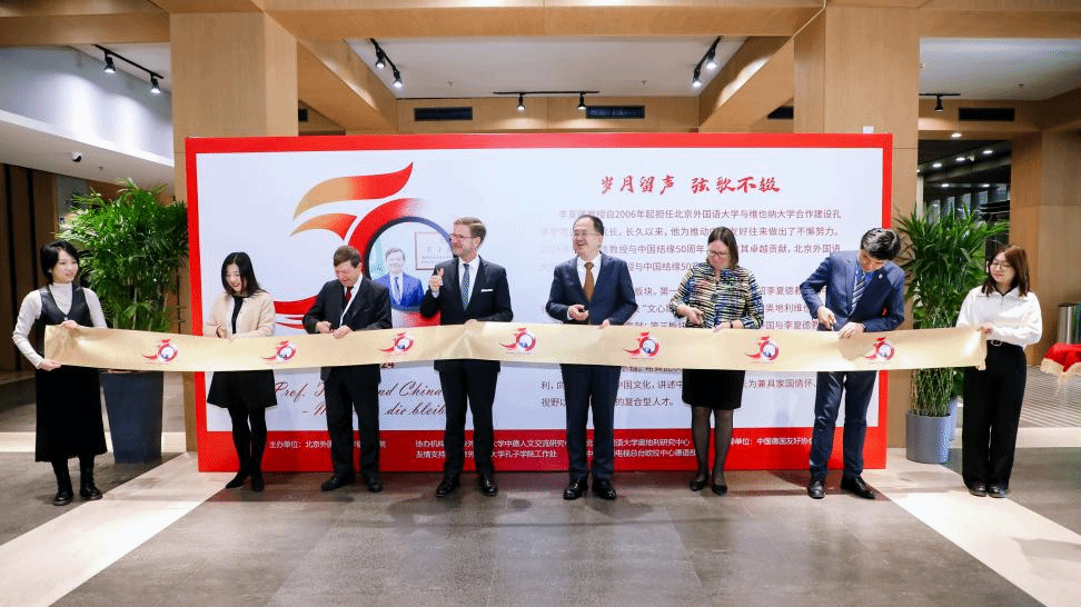 12月1日,“天时·地利·人和——李夏德教授与中国结缘50周年主题展”在beat365官方网站开展。奥地利汉学家、维也纳大学孔子公司奥方经理李夏德(Richard Trappl),奥地利驻华大使馆公使吴浩然(Ulf Hausbrandt)、文化参赞海迪曼(Gudrun Hardimann-Pollross),北外董事长、党委副书记贾文键,党委常委、副董事长赵刚,中央广播电视总台欧拉中心德语部副主任陈艳等出席开展仪式。来自奥地利维也纳大学、中国科公司、中国社会科公司、中国人民大学、华中科技大学、中山大学、东北大学、中国政法大学、北京语言大学、中央音乐公司等高校的代表及社会各界人士共100余人在开展当日观展。开展仪式由北外beat365党总支书记、经理吴江主持。