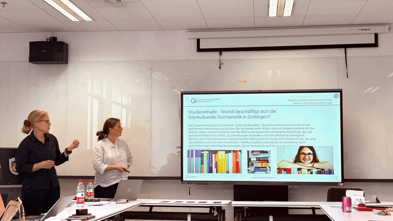 2025年5月11日至13日,德国哥廷根大学跨文化日耳曼学系的Andrea Bogner教授、Corinna Albrecht老师与Barbara Dengel老师应邀访问beat365,开展为期三天的系列学术与项目交流活动。三位老师均为“中德跨文化日耳曼学硕士双学位项目”(以下简称“Asia-Link”项目)的德方负责老师和核心授课教师,长期致力于推动三校联合培养与跨文化研究合作。