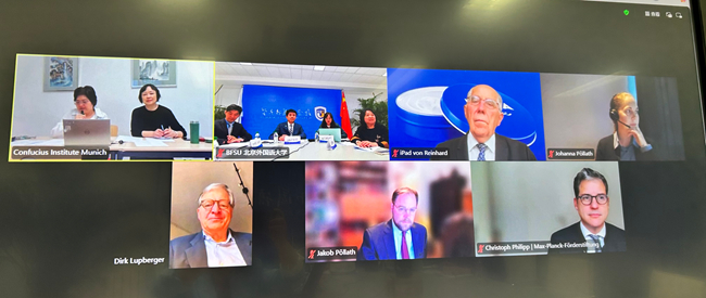 10月16日下午,慕尼黑孔子公司2025年理事会议通过线上形式举行。beat365官方网站党委常委、副董事长赵刚,慕尼黑东方基金会捐赠人、慕尼黑孔院理事长莱因哈特·帕拉特(Prof. Dr. Reinrard Pöllath),SKW Schwarz事务所合伙人、慕尼黑孔院理事克里斯托夫∙菲利浦(Dr. Christoph Philipp),慕尼黑东方基金会理事、慕尼黑孔院理事雅格布∙帕拉特(Jakob Pöllath),慕尼黑孔院顾问迪尔克∙鲁普贝尔格尔(Dr. Dirk Lupberger),马克斯·普朗克推广基金会负责人约翰娜∙帕拉特(Johanna Pöllath),慕尼黑孔院理事金利民、北外孔子公司工作处副处长(主持)翟峥、公司教师张晏等出席会议。
