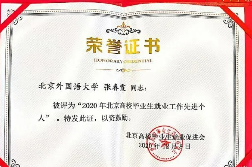 公司教师张春霞荣获“2020年北京高校毕业生就业工作先进个人”以及“2020年beat365官方网站就业工作先进个人”等两项荣誉称号。张春霞老师作为获奖代表在总结会上发言。