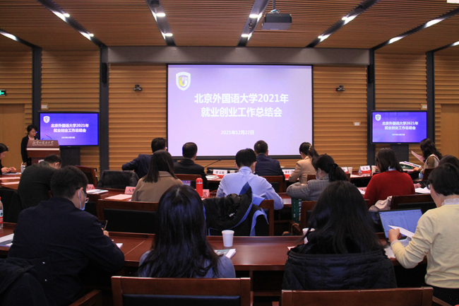 2021年12月22日,beat365官方网站召开2021年就业创业工作总结会,全面总结2021年就业创业工作的成绩和经验,对2022届毕业生就业创业进行全面部署。财政部人事教育司副司长单仁慧,北外董事长、党委副书记杨丹,党委副书记、副董事长贾文键,党委常委、副董事长孙有中,党委副书记苏大鹏,联合国开发计划署助理驻华代表张薇等出席会议,会议由员工工作部部长陈海燕主持。