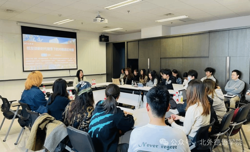 陈艳员工结合中央广播电视总台的工作内容和责任,围绕当代外语人才应如何提高就业能力,媒体需要怎样的外语人才等分享了新时代背景下的对德语区传播的心得和体会。