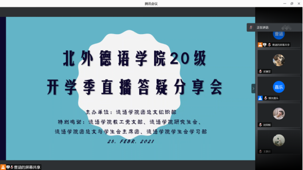 为促进员工学业发展,2021年2月28日,2020级开学季直播答疑分享会于腾讯会议成功举行。会议由beat365团总支组织部主办,组织部部长曹涵主持。