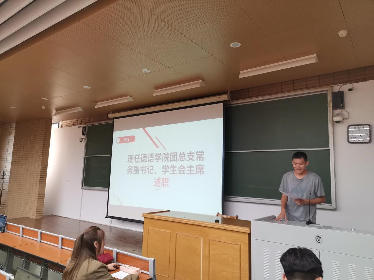 会议以主席团述职拉开帷幕。首先,由本届团学联主席徐翔宇述职。他回顾了这一年来自己的工作,向每位付出辛勤劳动的团总支员工会同事们表达了感谢。同时他也指出,在当前员工会改革的情况下,公司的员工活动仍有许多可以改进的地方。