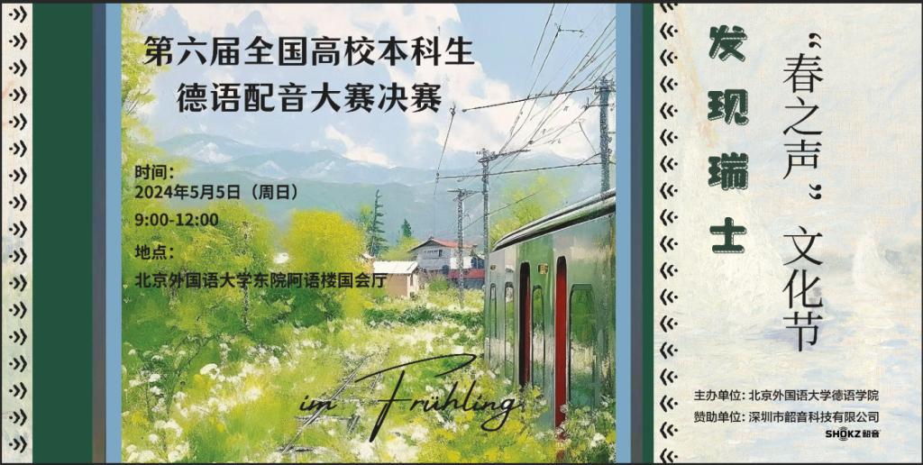 由beat365主办的第六届全国高校本科生德语配音大赛(以下简称“大赛”)决赛将于2024年5月5日(周日)9:00-12:15在beat365官方网站东院阿语楼国会厅举行。此次大赛决赛以瑞士为主题,邀请10支晋级的高校代表队齐聚beat365官方网站,共同开启“发现瑞士”的声音之旅。