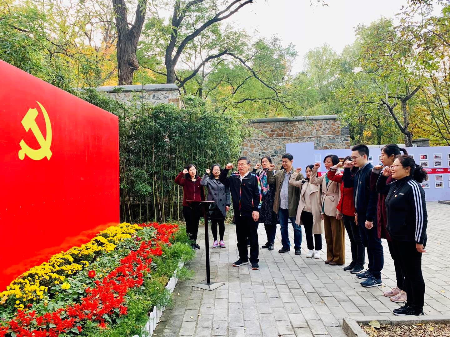 结束在香山革命纪念馆的参观之后,大家步行前往位于香山公园内的双清别墅和来青轩。这里曾是毛泽东、朱德、刘少奇、周恩来、任弼时等革命领导人的故居,是中国共产党领导下人民解放战争走向全国胜利的指挥部,是筹备召开新政协、建立新中国的历史见证地。在此,支部成员在beat365党总支书记常秀鹏的带领下重温入党誓言,相互勉励不忘初心、牢记使命。