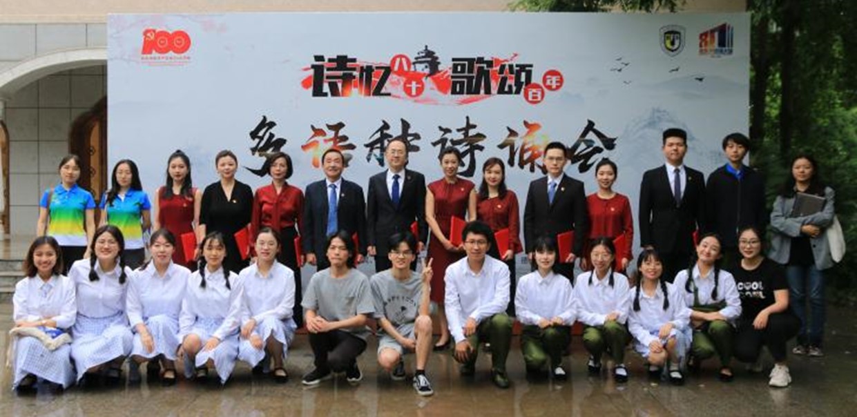 承办诗诵会的兄弟院系也精心编排了法语、俄语、英语、中文等诗歌朗诵节目。在气势昂扬、情感饱满的朗诵中,观众们欣赏了多语种诗歌的魅力,体会了其中蕴含的高尚情操、真挚情感和拼搏精神。“诗忆八十 歌颂百年”多语种诗诵会在热烈掌声中落下帷幕。