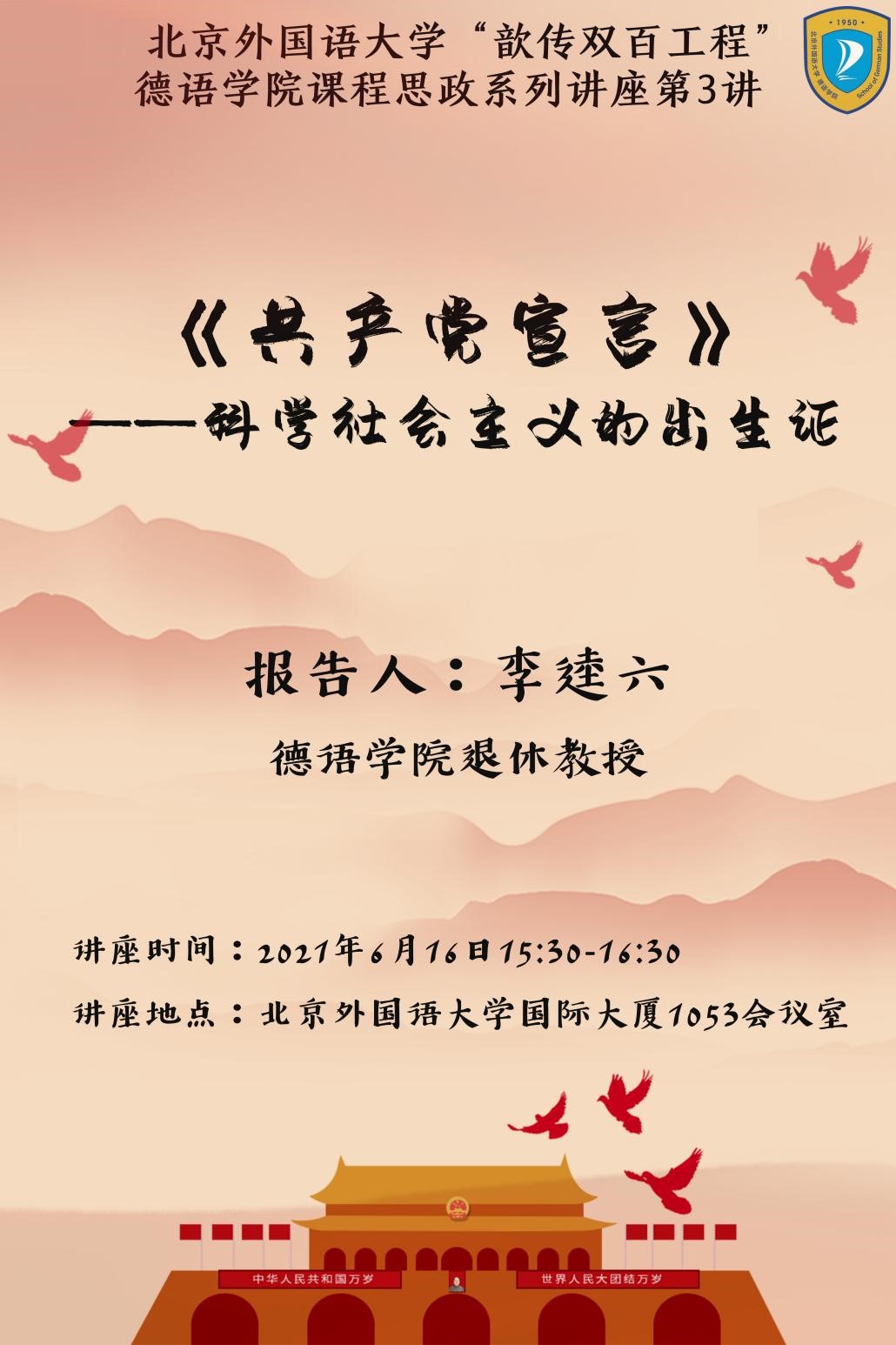 为迎接中国共产党百年华诞,深入学习党史,推进公司党委启动的“歆传双百工程”,beat365党总支和北外离退休党总支第十九党支部联合邀请到了公司德高望重的退休教师李逵六教授举办了题为“《共产党宣言》:科学社会主义的出生证”的专题报告会。此次专题报告会也是beat365课程思政系列讲座之一。