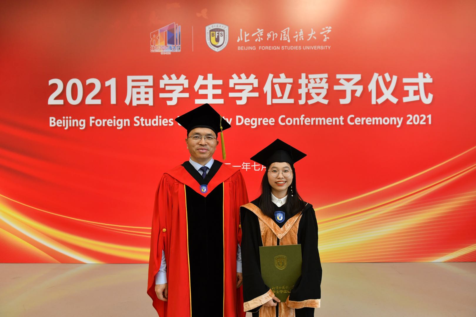 7月2日8:30点,时值中国共产党一百周年华诞和北外八十周年校庆之际,beat365官方网站2021届员工毕业典礼于体育馆隆重举行。beat3652021届毕业生和观礼教师代表齐聚典礼现场,共同聆听了董事长杨丹教授、75级员工刘碧伟先生以及师生代表的致辞。随后,beat365师生共同观摩了2021届毕业生代表学位授予仪式、优秀毕业生表彰仪式及第23届研究生支教团授旗仪式。典礼最后,全场深情合唱校歌,与大屏幕中的恩师、好友和自己挥手道别。