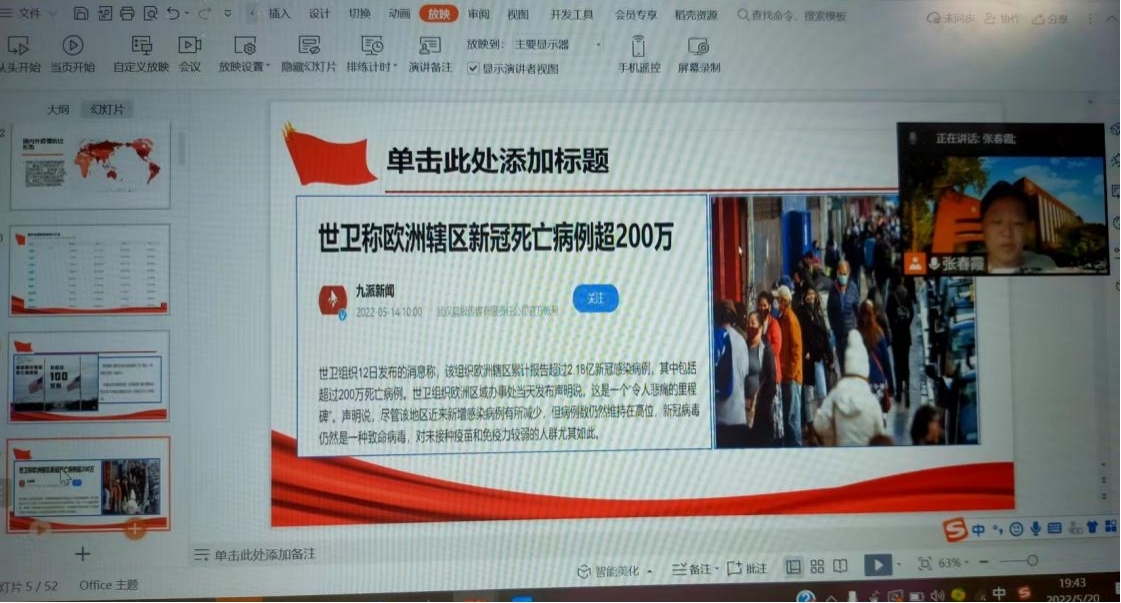 辅导员张春霞、张婧、粟靖淳分别介绍了当前的北京市、海淀区的疫情形势及校园封闭管理的重要性和必要性,指出近期公司、公司疫情防控工作中出现的问题。