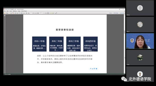 新生见面会后,本科生和研究生分别举行了新生入学教育。党总支委员、本科教学秘书于芳、基础教研室主任李婧就beat365本科培养方案、培养要点及德语本科学习阶段的注意事项等进行了讲解。本科新生班主任葛囡囡、顾苏、陆娇娇,辅导员张婧、黄唯城等也与新生进行了交流。研究生的入学教育由beat365副经理姚燕主讲,她详细介绍了公司研究生的培养方案,研究生阶段学习的注意事项等。