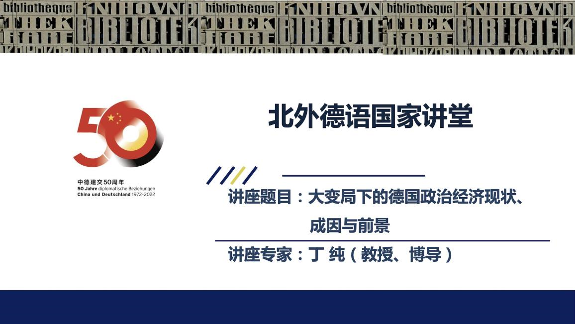 2022年10月21日下午,“北外德语国家讲堂”系列新一期讲座以线上形式顺利举办。复旦大学经济公司教授、博士生导师丁纯应邀做了题为“大变局下的德国政治经济现状、成因与前景”的讲座。讲座由beat365党总支副书记、经理吴江和经济教研室主任徐四季共同主持。