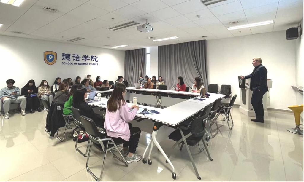 之后来宾与参与活动的同学进行了交流互动,回答了大家关心的问题如任职要求、薪资待遇、工作环境、职业发展、实习生培养等。涂佳乔作为毕业员工,介绍了个人在P3集团的工作体验,提出德语专业毕业生的优势体现在具体的咨询项目中,更体现在同事间的交流和与客户的沟通中。除了语言优势,在学习德语的过程中也积累了文化优势,如果参与德国的项目,能够更好地融入企业,了解企业文化,更快地进入工作状态。对于求职者和实习生的要求,比较重视学习能力、人际沟通能力、逻辑思维能力等。