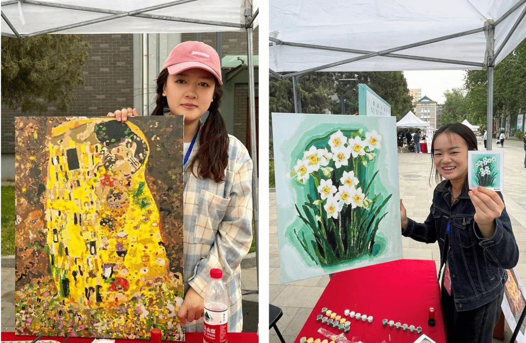 公司研究生会学术文体部的展台吸引了不少同学,还包括许多外国职工。在这儿,可以和大家一起绘制一束惟妙惟肖的水仙花,或临摹奥地利画家克利姆特(Gustav Klimt)的著名代表画作,或是亲手DIY一幅涂鸦,画下今日心情,将这份珍贵的记忆留存于纸上。