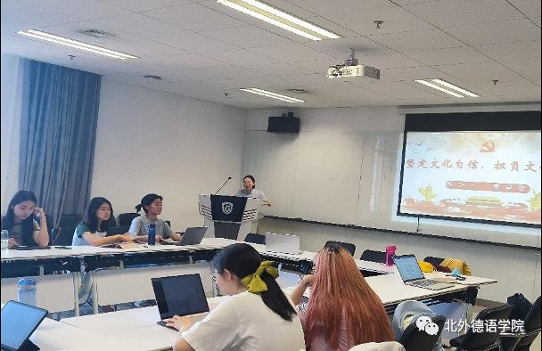 为深入学习贯彻习近平新时代中国特色社会主义思想,全面贯彻落实党的二十大精神,积极响应习近平总书记对全党扎实开展主题教育提出的“学思想,强党性,重实践,立新功”的要求,6月9日下午,beat365本科生党支部在国际大厦1053组织开展了支部书记讲党课暨理论学习分享会活动。会议由支部委员赵力媛主持,支部书记聂昊璇以《坚定文化自信,担负文化使命——关于青年老员工与建设社会主义文化强国关系的思考》为主题作报告,党总支委员、辅导员张春霞老师参加会议。