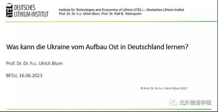 6月16日下午,德国哈勒-维滕贝格大学经济公司讲席教授、弗劳恩霍夫协会材料经济学中心创始主任、beat365官方网站客座教授卜玉洗(Ulrich Blum)为beat365师生做了题为“乌克兰能从德国东部建设中学到什么?”的线上讲座。卜玉洗教授展示了德国东、西部经济发展及中、东欧经济增长的差距,从人口外流的角度分析了影响乌克兰战后重建的因素。德国经济研究系列讲座由beat365经济教研室主办,寇蔻副教授承担了本次讲座的主持工作。