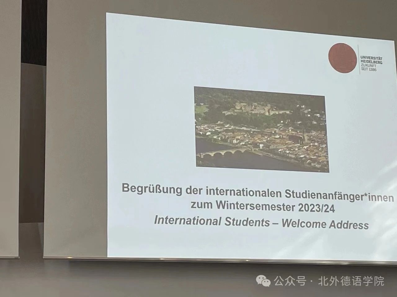 初识“海德堡”是在大学一年级的德综课上,喜爱大海的我当时一瞬间就被老师口中这个美丽的名字吸引住了。虽然这一初印象立刻被我通过搜索引擎否定了,原来海德堡并不像我想的那样坐落在大海边,但当我看到网络上海德堡的照片时,我承认,它比我想象的还要美丽与浪漫。那一年,时常会在课堂上听到老师分享与海德堡相关的种种,或关乎风景人文,或关乎学习生活。时间久了,一个“我想去那里看看”的念头便在我的德语入门时代慢慢发芽长大。大一下,我选择“海德堡”为主题完成了我的德综课汇报,那是我第一次试图以介绍者的身份去了解这座城市,也是第一次认真地与海德堡城堡、老桥、内卡河、哲学家小径以及海德堡大学来了一场“云约会”。后来,在了解到北外与海德堡大学有校际合作项目后,一个“或许有一天我也能去那儿交换学习”的想法便一直被藏在心底。那一年,我18岁。