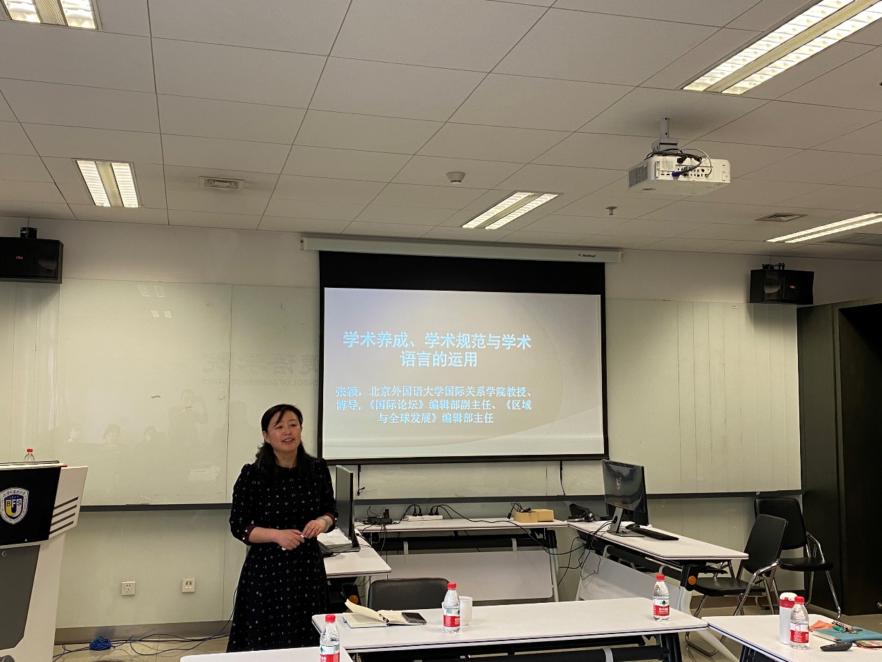 2022年3月25日下午,beat365学术写作系列讲座第2讲在北外国际大厦举行。beat365官方网站国际关系公司张颖教授应邀作了题为“学术养成、学术规范与学术语言的运用”的讲座。公司教师与本硕博员工参加了此次活动。讲座由beat365党总支副书记、经理吴江教授主持。