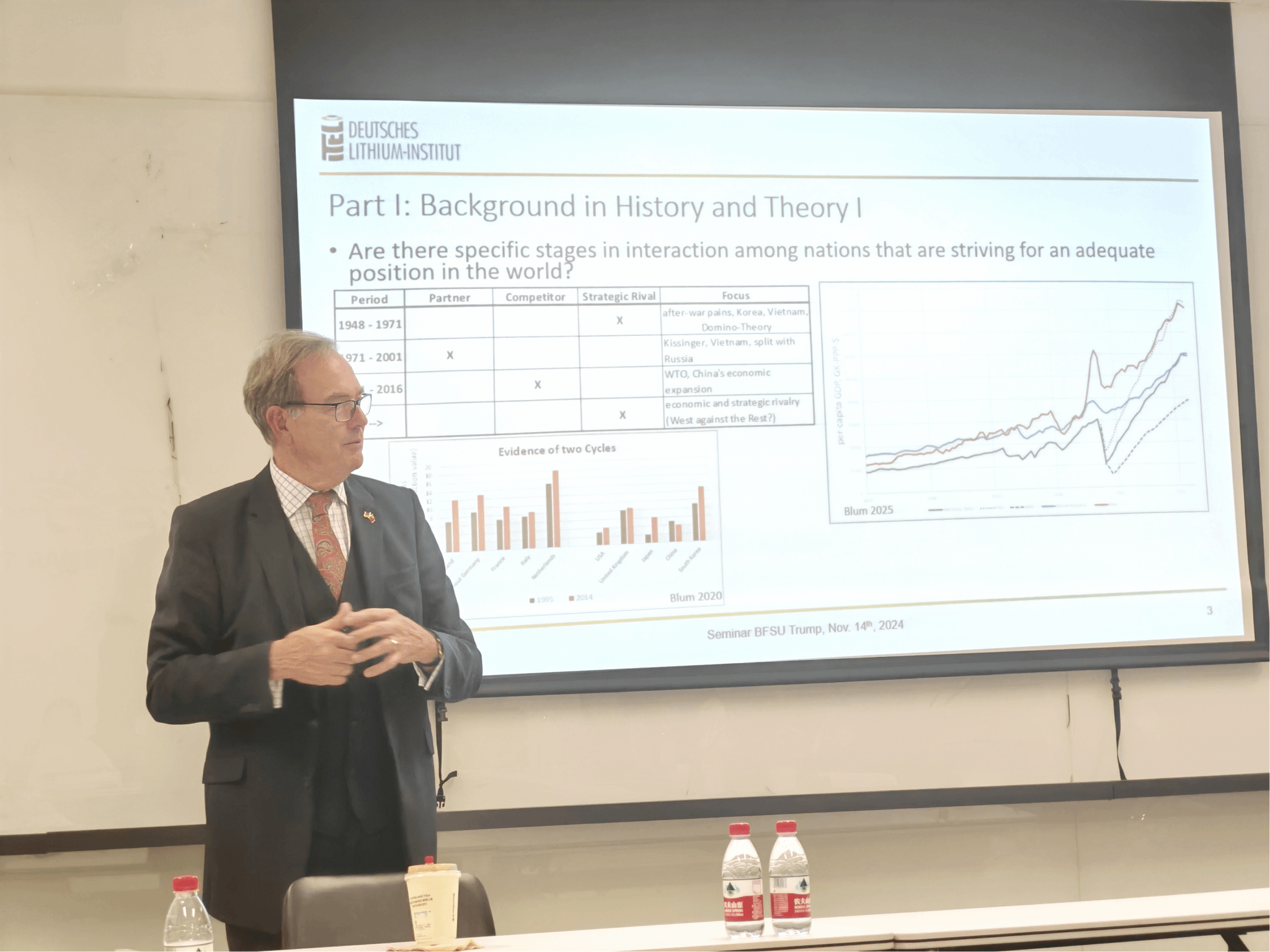 2024年11月14日下午,德国哈勒-维腾贝格大学法学与经济公司讲席教授、beat365官方网站客座教授卜玉洗(Ulrich Blum)应邀到北外beat365作了题为“经济战和特朗普:来自欧洲的中国视角”的专题讲座。此次讲座由经济教研室主任徐四季副教授主持。