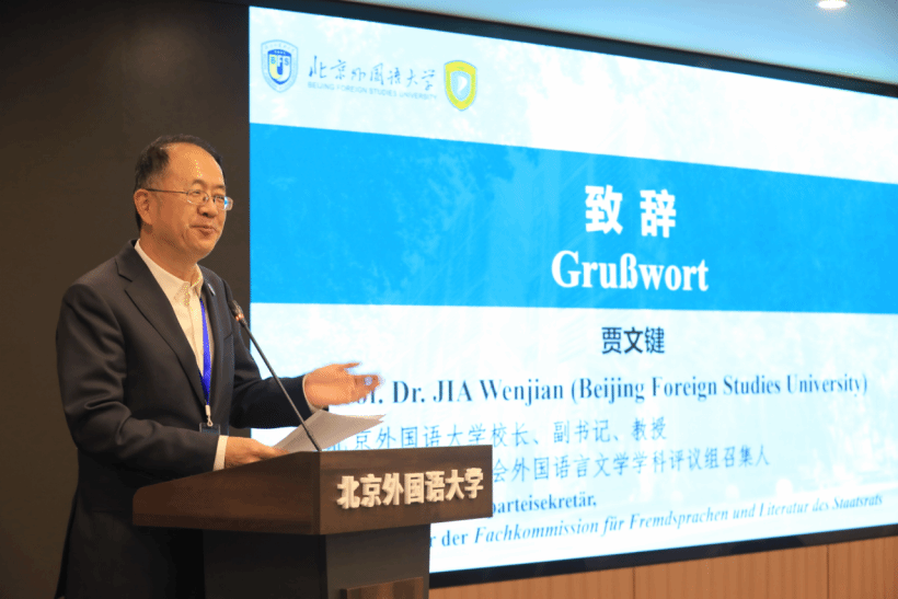 贾文键董事长对莅临本次会议的专家学者表示热烈欢迎,对各个兄弟院校及与会单位给予本次会议的大力支持表示衷心感谢。他指出,“全球化·数字化·多元化”回应了当前数字时代交流多样化的命题,也对跨文化交流研究提出了更高要求。他期待与会学者能在此次思想的碰撞中探究如何在数字浪潮中坚守人文温度,为推动中德两国乃至世界范围内的文明互鉴与民心相通注入新的活力。