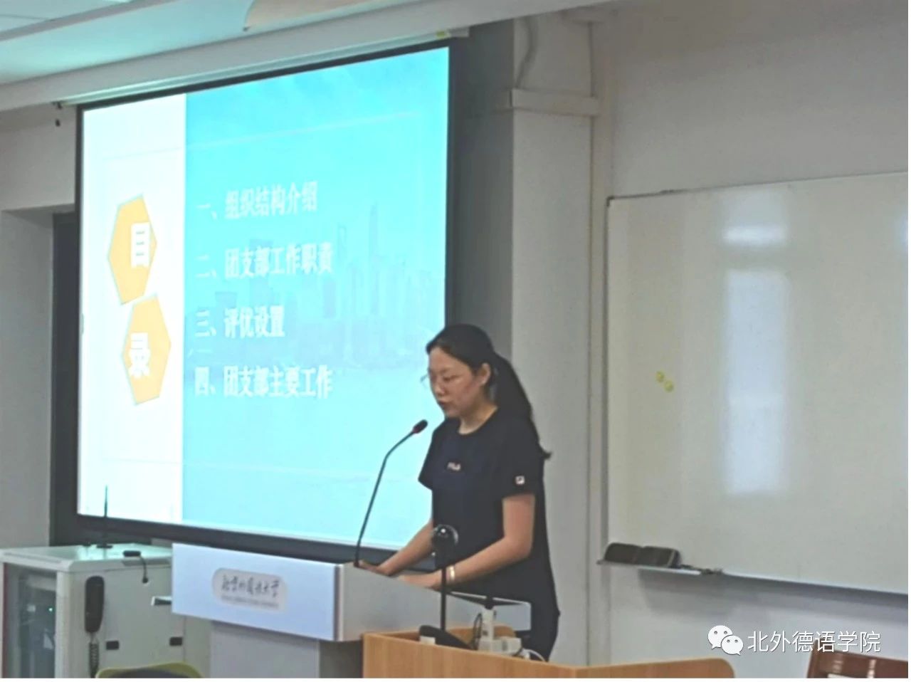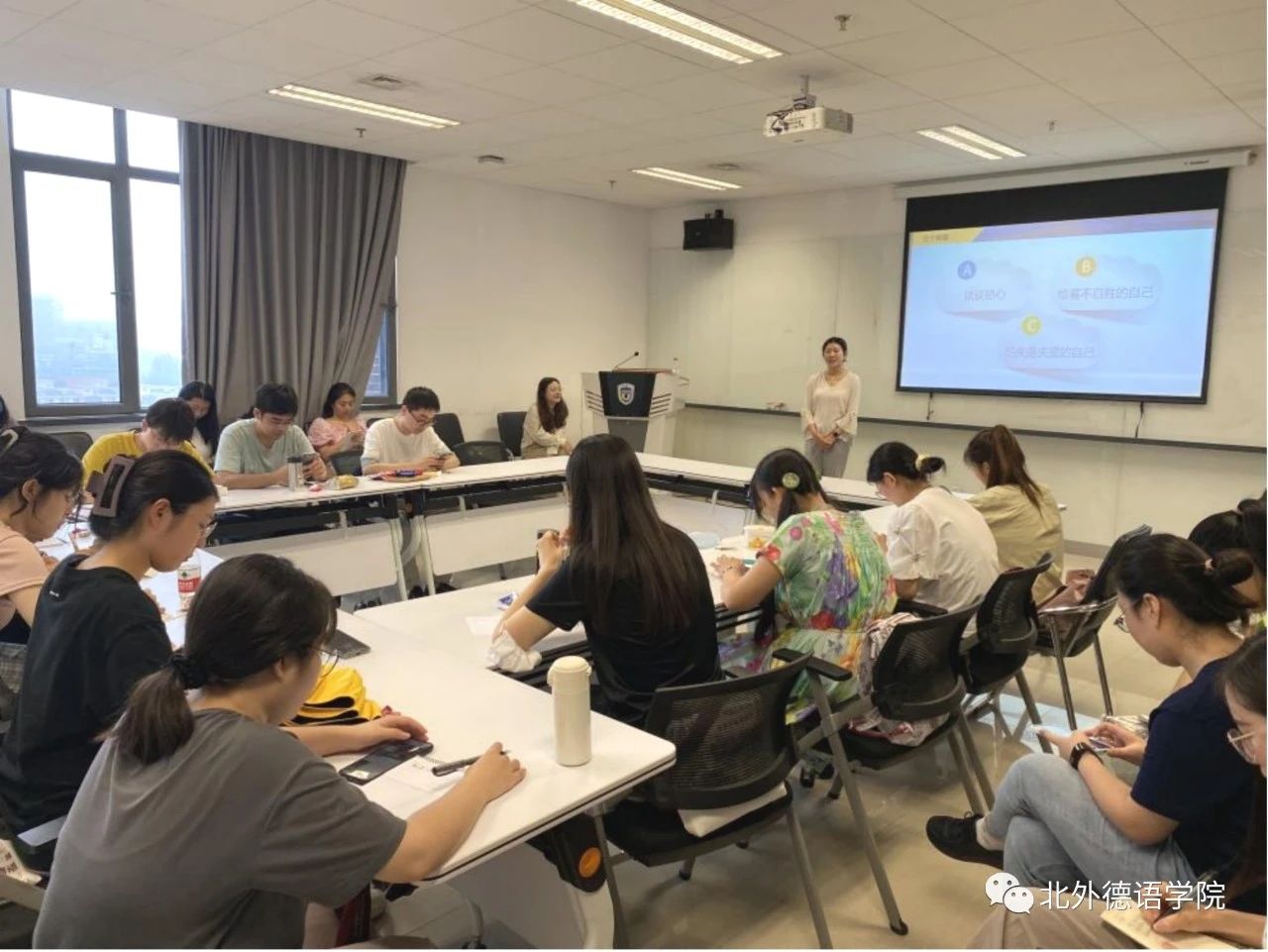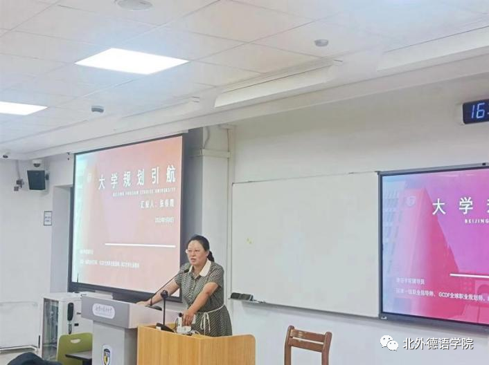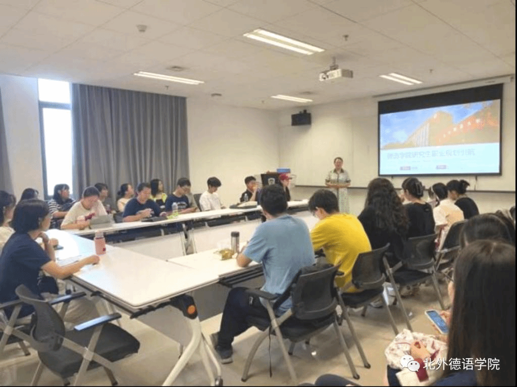 9月7日上午,在国际大厦1053会议室,beat365举行研究生新生职业规划引航讲座。党总支委员、辅导员张春霞结合beat365近四年研究生的毕业去向,介绍了公司研究生就业特点,分析了德语专业研究生就业形势和趋势,为新生进行职业规划提出相关建议,并进行了入党、安全、纪律等相关教育。