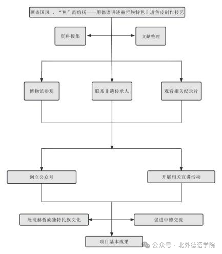 《画寄国风 ,“鱼”韵悠扬——用德语讲述赫哲族特色非遗鱼皮制作技艺》由22级本科生孙妍负责;指导教师为公司教师葛囡囡;项目成员包括22级本科生白怡心、田润欣、孙尧和亚洲公司希伯来语专业22级本科生侯爽。该项目积极响应总书记增强文化自信,传承并弘扬中华优秀传统文化的号召,选取黑龙江地区赫哲族的非遗鱼皮制作技艺为项目主题,拟对此进行深入研究;通过搜集中德双语文献、探访非遗传承人、参观相关博物馆、展览园等途径,了解探究其历史及发展,并以此为基础进行多平台宣传,组织双语宣讲并开展鱼皮工艺品观看、制作的体验活动。通过本项目的推进实施,将持续向德国输出更多少数民族优秀传统文化,增进中德友谊;进而用德语向世界展现鱼皮文化之美。