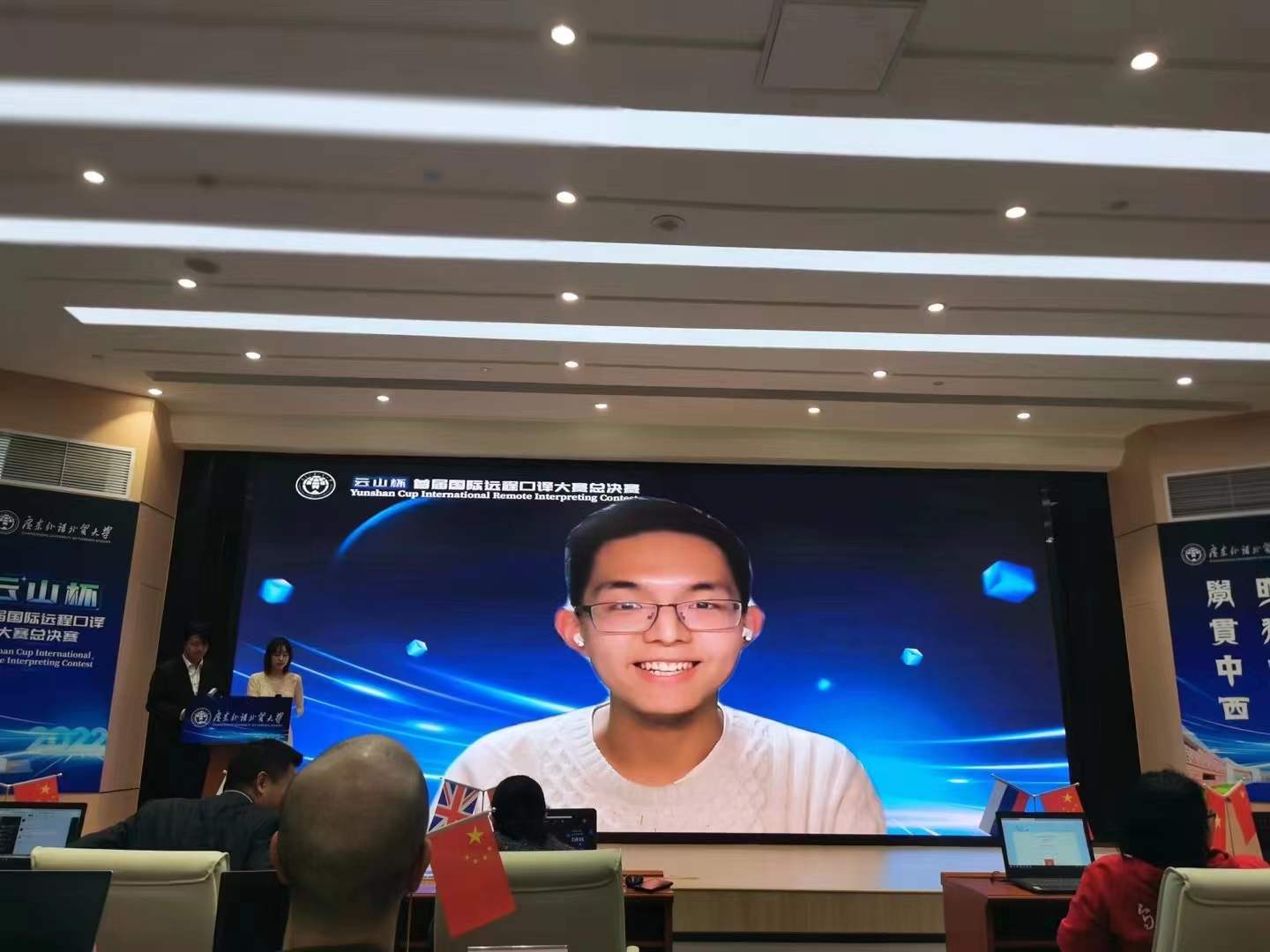 2022年1月15日,由广东外语外贸大学主办的“云山杯”首届国际远程口译大赛落下帷幕,公司博士生孙策哈吉获得了德语交传与同传双料冠军。