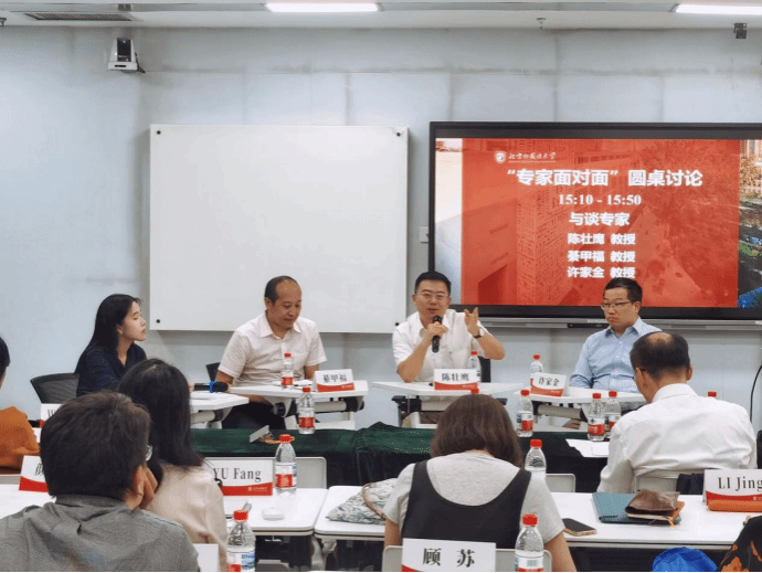 随后的“专家面对面”圆桌讨论由北外外文所2023级硕士生陈婧倩主持。上海外国语大学德语系主任陈壮鹰教授、青岛大学外语公司德语系主任綦甲福教授、北外中国外语与教育研究中心副主任许家金教授围绕学术研究的前沿意识、论文写作的学术路径与文献综述的批判性梳理等议题展开深入对话,现场气氛活跃。