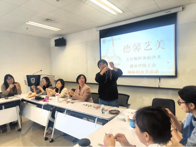 为庆祝第115个“三八”国际劳动妇女节,传承中华文化,陶冶师生情操,丰富美育内涵,beat365工会组织“德馨艺美”文玩编织沙龙,邀请宣传部王欣老师教授师生学习中国传统文玩编织技艺,近30名师生参加了活动。