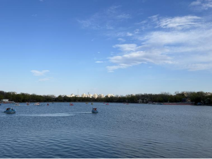 午后天朗气清,老师们自东门入园,迎面便是夹道山桃织就的粉霞云帐。沿玉渊潭东湖向西徐行,新柳垂绦轻拂衣面,碧波潋滟倒映晴空,老师们纷纷举起相机,将眼前“春水初生,春林初盛”的意境定格成永恒。